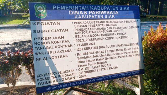 Siak – Dugaan praktik mark-up anggaran mencuat dalam proyek pembangunan tempat parkir Dinas Pariwisata Kabupaten Siak. Proyek yang menelan anggaran sebesar Rp 465 juta tersebut kini menjadi sorotan masyarakat dan berbagai pihak terkait. (09/01/2025)