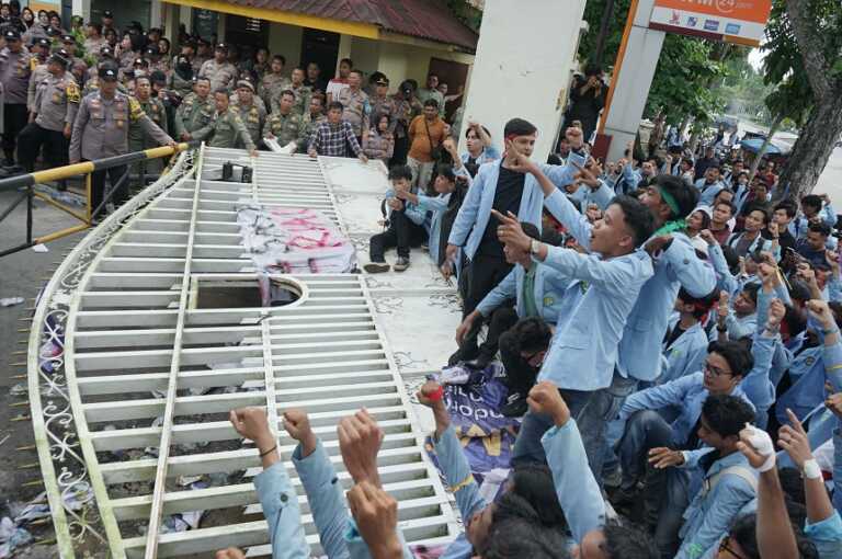 Pekanbaru – Aksi ribuan mahasiswa Universitas Riau (UNRI) yang menggedor Kantor Gubernur Riau pada Rabu (13/8) Massa aksi menuntut gubernur memberikan penjelasan terkait sejumlah persoalan di daerah, mulai dari rencana pembangunan pengadilan militer dekat kampus, meluasnya kebakaran hutan dan lahan (karhutla), buruknya infrastruktur jalan, konflik agraria, hingga ketidakjelasan informasi beasiswa provinsi. Aksi BEM UNRI tampak terfokus menuntut pencairan beasiswa daerah senilai Rp109 miliar menuai tanda tanya besar. Meski aksi itu terlihat garang di awal, fakta di lapangan menunjukkan ada inkonsistensi sikap, dan secara substansi, tuntutan ini menyasar porsi dana yang sebenarnya hanya secuil untuk UNRI. (15/08)