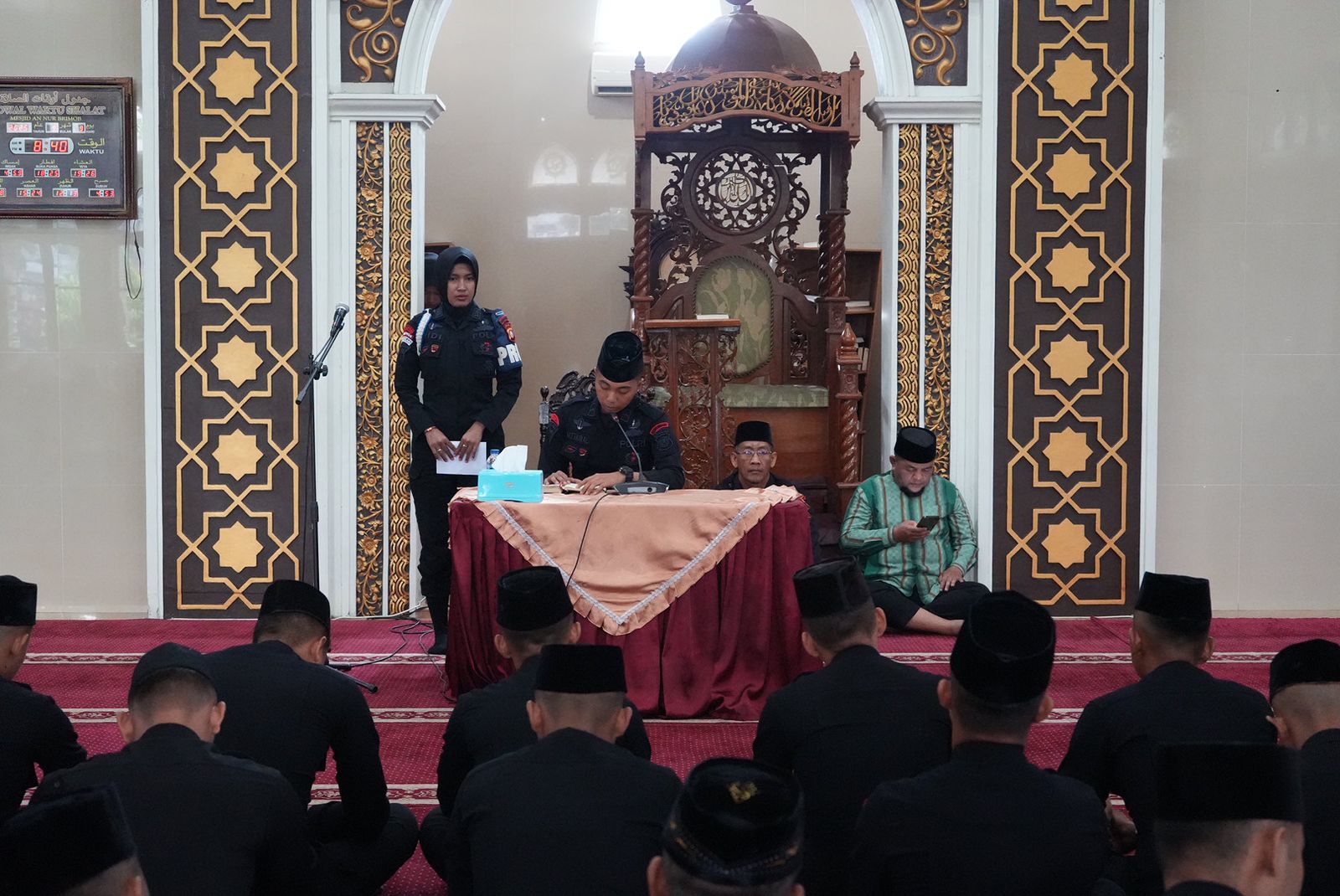 Kegiatan diawali dengan pembacaan Al Quran oleh Bripda Fickry Zainal dan Saritilawah oleh Brigpol Widi Pregiati, S.Psi., M.H. dilanjutkan dengan ceramah ustadz Delfi Jar Halil, S.H.I.,