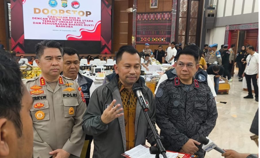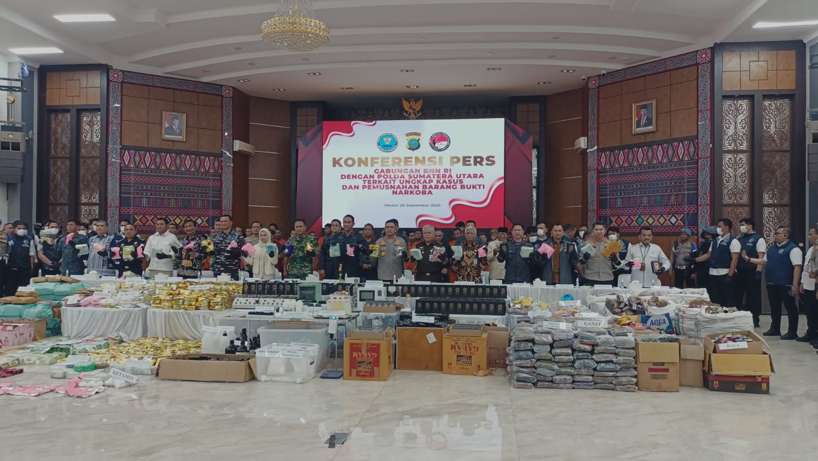 Data tersebut terungkap saat Konferensi Pers BNN RI dengan Polda Sumut yang dipimpin oleh Kepala BNN RI, Komjen Suyudi Aryo Seto di Aula Tri Brata, Mapoldasu, Jumat(26/9/2025) Siang.