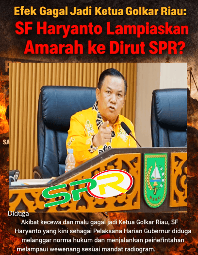 Mataxpost | Pekanbaru,- Pemberhentian Direktur Utama PT Sarana Pembangunan Riau (SPR) melalui Rapat Umum Pemegang Saham Luar Biasa (RUPS-LB) yang digelar Jumat, 23 Januari 2026, terus menuai sorotan tajam publik. Proses tersebut dinilai sarat tekanan, bermasalah secara hukum, dan kental nuansa kepentingan politik, sejumlah kalangan menilai dinamika ini tidak dapat dilepaskan dari kegagalan Wakil Gubernur Riau SF Haryanto dalam merebut kursi Ketua DPD Partai Golkar Riau. (25/01)