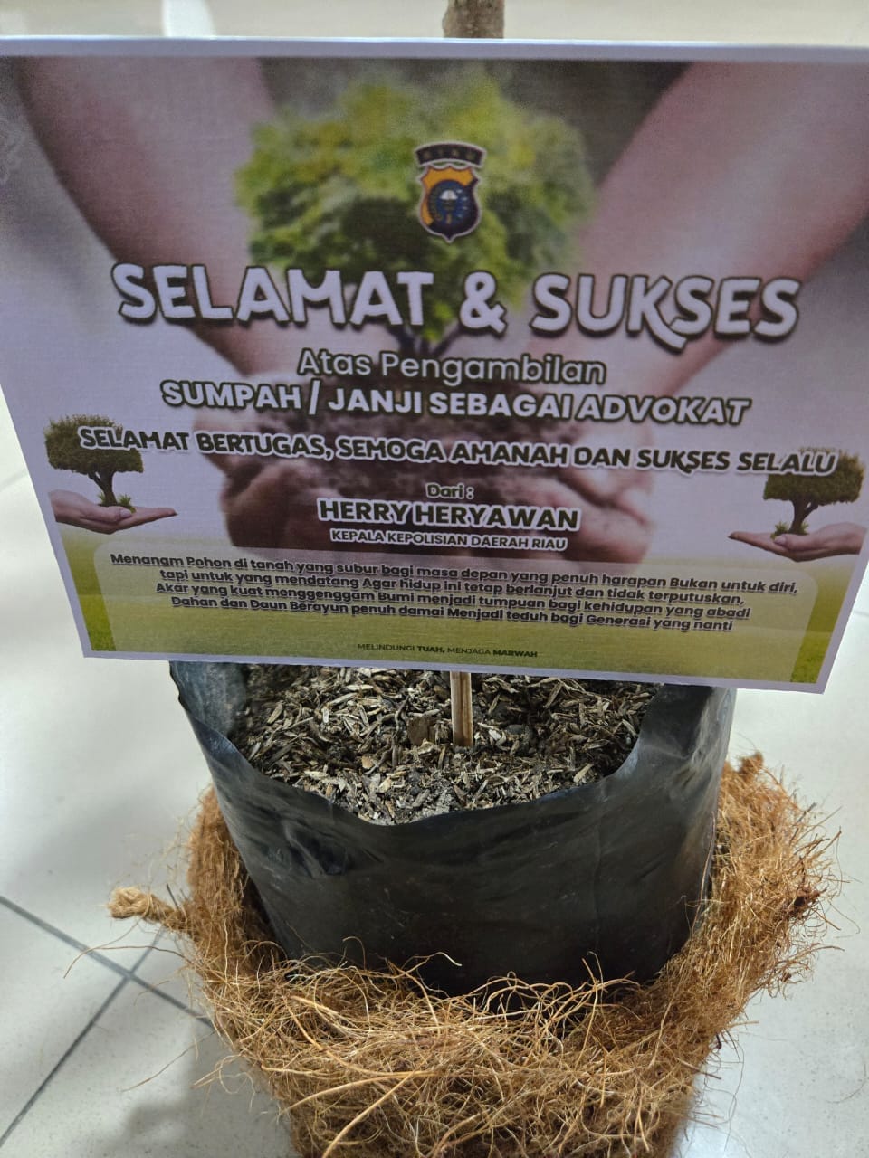 Ia juga menyampaikan apresiasi khusus kepada Kapolda Riau atas pemberian bibit pohon tersebut. Menurutnya, bibit itu melambangkan komitmen terhadap misi menjadikan Riau lebih hijau.