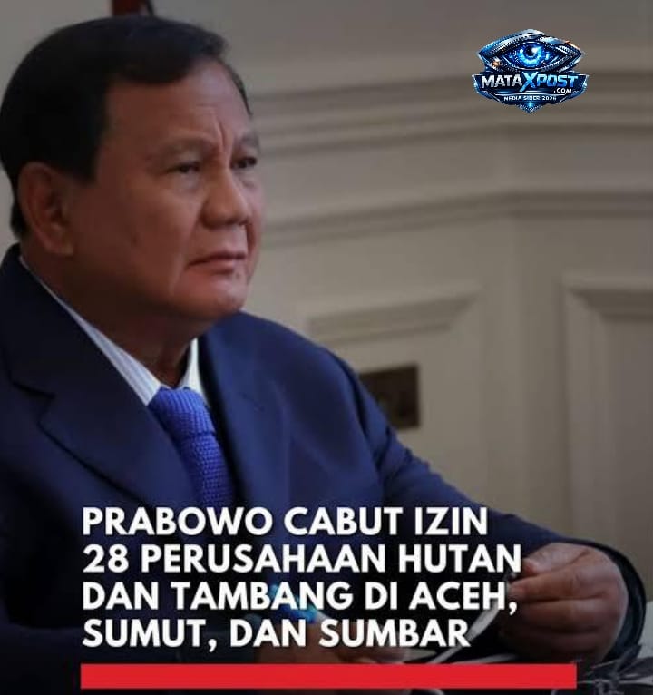 Mataxpost | Presiden Prabowo Subianto memutuskan pencabutan izin 28 perusahaan yang terbukti melanggar ketentuan pemanfaatan kawasan hutan setelah memimpin rapat terbatas bersama kementerian, lembaga, dan Satuan Tugas Penertiban Kawasan Hutan (PKH) melalui konferensi video dari London, selasa (20/01)