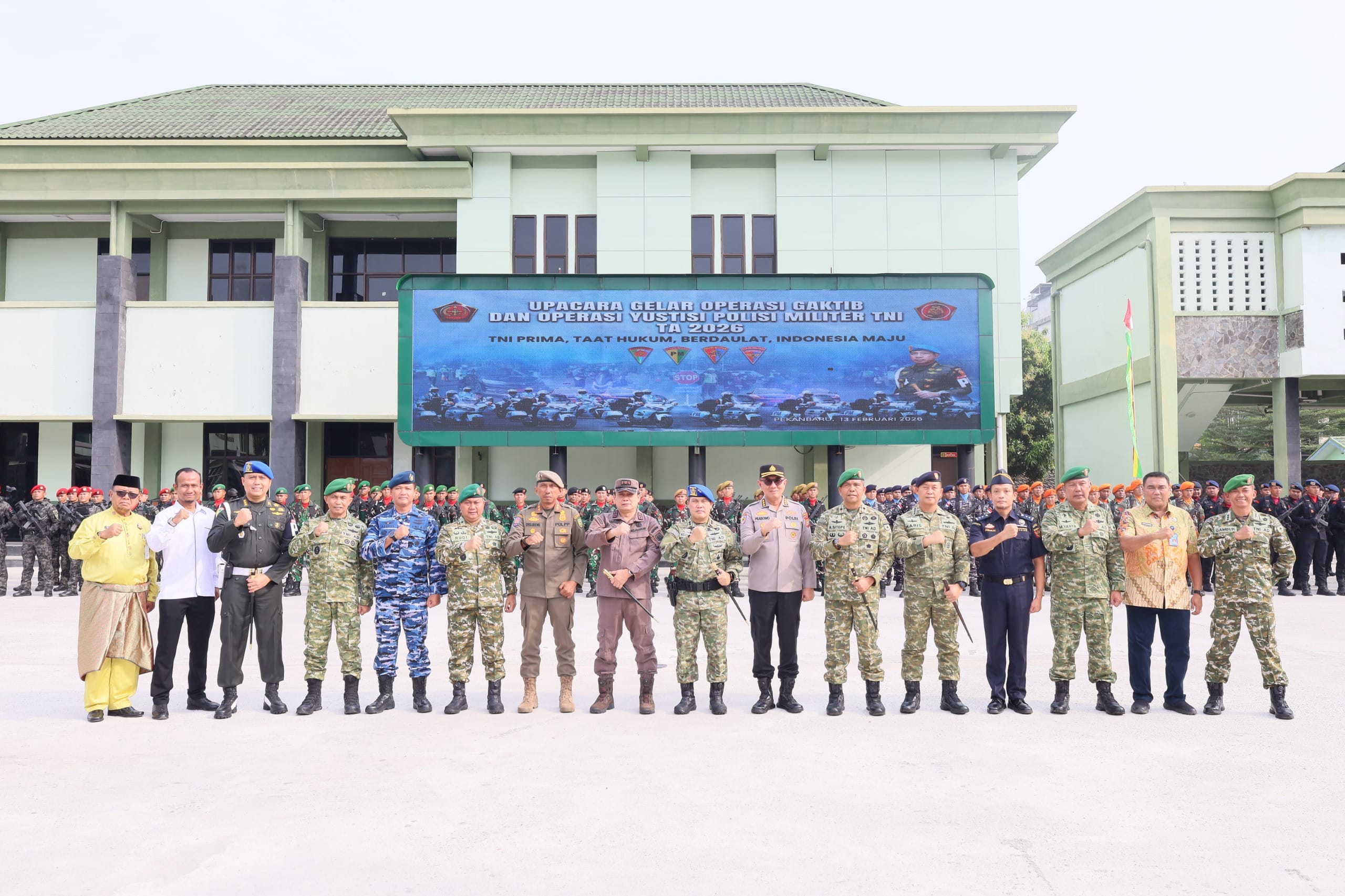 Mataxpost | Pekanbaru β Panglima Kodam XIX/Tuanku Tambusai Mayjen TNI Dr Agus Hadi Waluyo SAP MM CHRMP., memimpin Upacara Gelar Operasi Penegakan Ketertiban (Gaktib) dan Operasi Yustisi Tahun Anggaran 2026, Jumat (13/2/2026), di Lapangan Makodam XIX/Tuanku Tambusai, Jalan Mayor Ali Rasyid, Kelurahan Kota Tinggi, Kecamatan Pekanbaru Kota. (14/02)