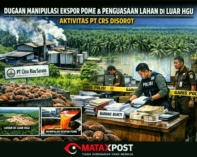 Mataxpost | Kuansing, Riau,- Sejumlah dugaan pelanggaran di sektor perkebunan kelapa sawit mencuat di Kabupaten Kuantan Singingi, Riau. Sorotan publik kini tertuju pada aktivitas PT Citra Riau Sarana (PT CRS) diduga terkait dengan dua persoalan serius: penguasaan lahan di luar Hak Guna Usaha (HGU) serta dugaan manipulasi dokumen produksi Palm Oil Mill Effluent (POME) yang berpotensi berkaitan dengan praktik manipulasi ekspor. (05/03)