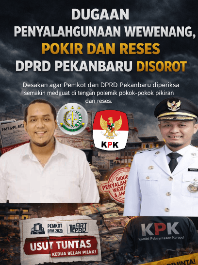 Mataxpost | Pekanbaru,- Dugaan penyalahgunaan wewenang dalam pengelolaan pokok-pokok pikiran (pokir) dan kegiatan reses anggota DPRD Kota Pekanbaru kian mencuat dan menjadi sorotan publik, seiring polemik pembahasan Anggaran Pendapatan dan Belanja Daerah (APBD) Kota Pekanbaru Tahun 2026 yang sempat mengalami keterlambatan. (24/03)