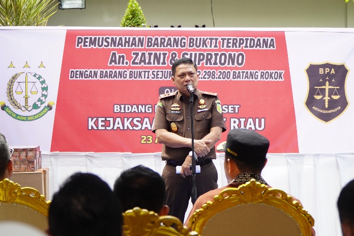 Kasi Penkum dan Humas Kejati Riau, Zikrullah, menegaskan bahwa pemusnahan ini merupakan bentuk komitmen penegakan hukum sekaligus menjaga kepentingan negara.
