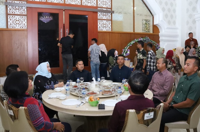 Bupati Kasmarni dan Pangdam XIX/TT , Mayjen TNI Dr. Agus Hadi Waluyo, S.A.P., M.M., CHRMPMataxpost | Bengkalis, – Pangdam XIX/Tuanku Tambusai Mayjen TNI Dr. Agus Hadi Waluyo, S.A.P., M.M., CHRMP di dampingi PJU Kodam menghadiri kegiatan ramah tamah dengan Pemerintah Kabupaten Bengkalis bersama jajaran Forkopimda Kab. Bengkalis di Wisma Sri Mahkota, Senggoro, Senin (27/4/2026) malam.