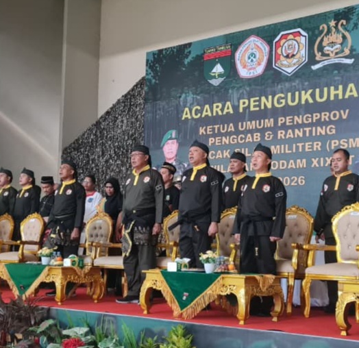 Mataxpost | Riau,- Pengukuhan kepengurusan Pencak Silat Militer (PSM) wilayah Kodam XIX/Tuanku Tambusai dipimpin langsung oleh Kasdam XIX/Tuanku Tambusai Brigjen TNI Rudi Hermawan, S.E., M.M. dalam prosesi yang berlangsung khidmat dan penuh semangat. (29/04)
