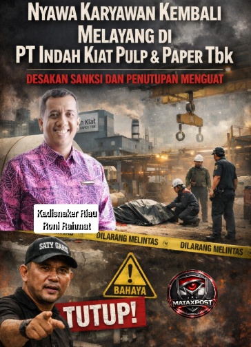 Mataxpost | Siak, – Kecelakaan kerja mematikan kembali mengguncang industri pulp dan kertas Indonesia. Seorang pekerja di PT Indah Kiat Pulp & Paper Tbk dilaporkan tewas setelah tertimpa gulungan kertas raksasa di area produksi perusahaan pada Kamis pagi, 2 April 2026, di Jalan Raya MinasβPerawang Km 26, Kabupaten Siak, Riau Province, Indonesia. (05/04)